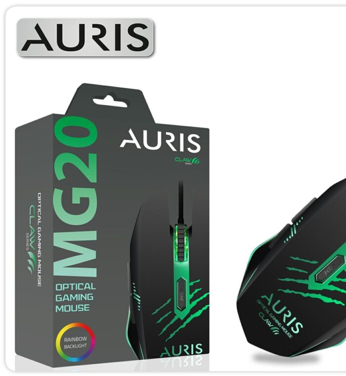 Auris MG20 Claw Serisi, oyuncular için tasarlanmış güçlü ve şık bir kablolu oyun faresidir. 3200 DPI hassas optik sensörü sayesinde hızlı ve kesin hareketler sağlar. Canlı RGB aydınlatmasıyla oyuncu masasını renklendirirken, ergonomik yapısı özellikle pençe (claw) tutuşu seven kullanıcılar için maksimum rahatlık sunar.